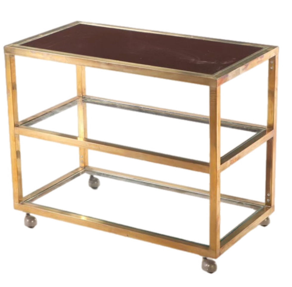 Bronze, Glass and Laminate Bar Cart on Wheels C 1970